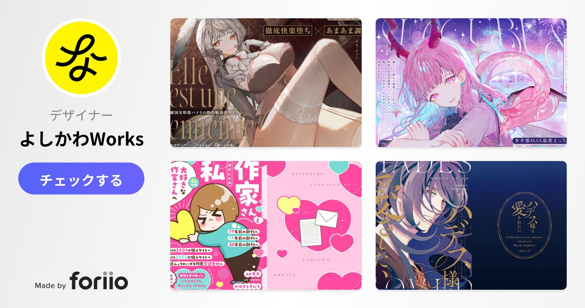 同人誌、配信作品などの表紙デザインをしています。商業のご依頼も常時受けつけております。詳細はTwitter(X)をご参照ください。同人誌の表紙デザインを承っております。イラストや素材の魅力を引き出すデザインが得意です。二次創作や創作、その他...